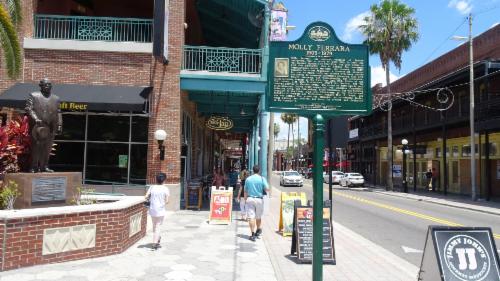 ... und in Ybor City, das ist ein historisches Stadtviertel in Tampa. Gegründet wurde Ybor City 1880 von cubanischen Zigarrenherstellern. Auch heute lebt hier noch eine große cubanische Gemeinde. Ende des 19. Jahrhunderts war Ybor City die Zigarrenhauptstadt der Welt. In 150 Zigarrenfabriken wurden pro Jahr 700 Millionen Zigarren von Hand gerollt. Heute ist Ybor City Kneipenviertel und Touristenmagnet. Aber einige wenige Zigarrenmanufakturen gibt es immer noch.